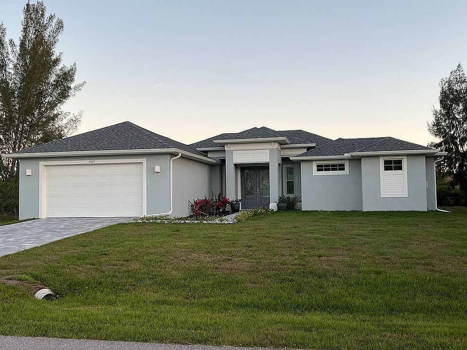 Waterfront community of South Gulf Cove, this home features upgraded granite countertops, tile throughout the home, zero corner sliders leading out to an oversized paver lanai and in ground heated salt water pool. Hurricane windows and doors, Paver driveway leading to two car garage with epoxy floor.