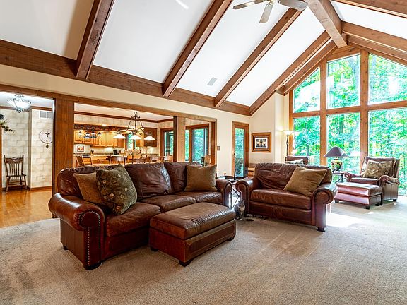 Open house 9/29/22 5-7pm. This home is a perfect blend of the beauty and functionality of a Roy McNett designed home and the tranquility of a 1.33 acre estate in coveted Woodcliffe Estates. As you venture inside you'll immediately be swept away by the vaulted great room and immersed in tree-house like views of the canyon below. Making your way through the home you can only be in awe of the expansive master with his and her walk in closets, study with beautiful built-ins, solid oak flooring, Grabill cabinetry with granite countertops, huge master bath with multi-head shower, screened in porch, main level laundry room and bedroom with it's own private deck (bedroom currently used as a sitting room). And that's just the main level! The lower level boosts a full bar, peninsula fireplace, porch area, 2nd living room, jack and jill bath, large shop/storage area and two ample bedrooms with egress windows. Oversized 3 car garage too! Don't miss out on this one of a kind treasured property.