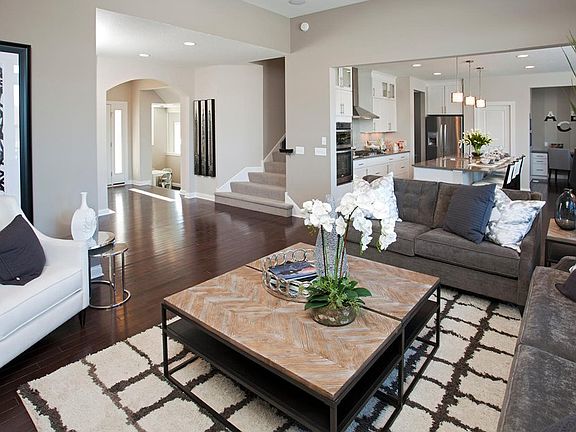 Open layout, abundance of flex spaces and spa-like owner's suite. Entertaining comes naturally to this main floor layout. The socially inclined kitchen opens to a huge living area with 11 foot ceilings.