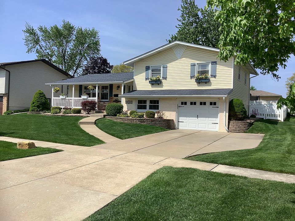 All I can say is LOVE AT FIRST SIGHT! This home will captivate you from the moment you pull up to the curb. Only three or four homes in this area have sub-basements!! Lovely landscaping and an inviting front porch greet you. Nice foyer when you enter the home before you walk into the l-shaped living room/dining room. The dining room is totally open to a very modern kitchen with roll out cabinets!! Great working kitchen...just gorgeous. Take a walk upstairs to a very nice, wide hallway with the three bedrooms and full bath! The bedrooms all have wood floors and two of them have nice corner windows. This is a very bright home! The bathroom has double pedestal sinks...very unique! Nice hall closet to store so much more! Go down to the family room which is a mix of cozy and a great size! Nice bathroom and full utility room. The entrance to the garage is off of here also. Now open the door to a full 23x23 basement! The garage is very nice and has additional storage in the back cove. Now...walk out onto the deck from the kitchen and overlook your very large backyard! Love it! Honestly...not kidding when I say you need to act now. Central air 2012, Roof 2014, Furnace 2006, Hot Water Heater 2019 and 2006 for the Vinyl siding. This was a model home when it was built! Hurry!!