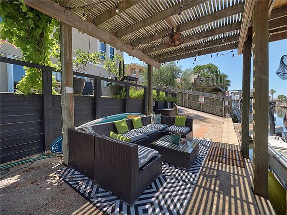 Waterfront Duplex with Boat Lift & Oversized Garage and Zoned for short term rentals. Whether you are empty-nesters, looking to invest; run an VRBO business, retire, or want a second home at the beach, this gem is for you.Experience the perfect blend of style and function in this beautifully updated 2-bedroom,2-bathroom canal-front duplex.Offering a boat lift (boat negotiable),this property is made for those who love life on the water. The kitchen boasts granite countertops and a custom-designed pantry with worldly-style tile, built-in shelving, and cabinetry, making it both beautiful and practical for the organized chef.The primary suite is a true retreat with a dreamy walk-in closet and an updated spa-style bathroom featuring a relaxing soaking tub.Additional perks include under-stairs storage for organization and an attached flexible bonus space perfect for guests, hobbies, or an office.This versatile flex space is designed to adapt to your lifestyle.The thoughtful layout allows owners and friends to enjoy their own getaway,while still providing plenty of room to relax, recharge, or make the space uniquely your own.The oversized garage(14’Tall, 35’ deep, 13’wide)easily accommodates a boat, RV, or multiple golf carts, making it a rare coastal find.2- 220-volt electric plugs will work for RV or EV. Garage is prewired with an outlet for a generator to run the flex space.With its modern updates and thoughtful storage solutions,this home checks every box.Zoned for short-term rentals,it’s an excellent investment opportunity as well as a personal retreat.The backyard is ideal for entertaining and enjoying kayaking, paddle boarding, or fishing off the dock,Just a quick golf cart ride to the beach, dining, and shopping, this canal-front gem delivers the ultimate Island lifestyle. Enclosed outside shower, fish cleaning station. This updated home is golf cart friendly to the beach.