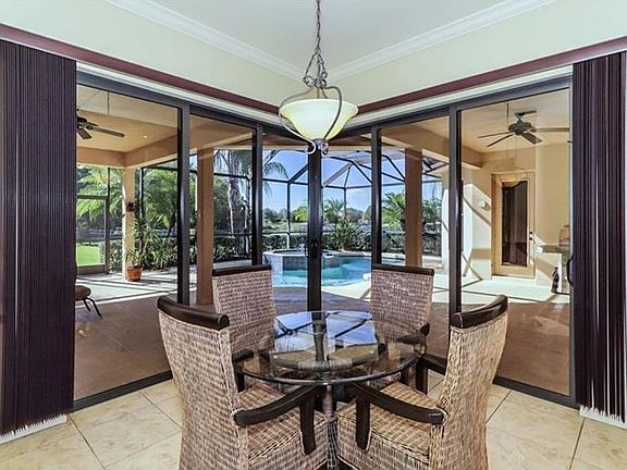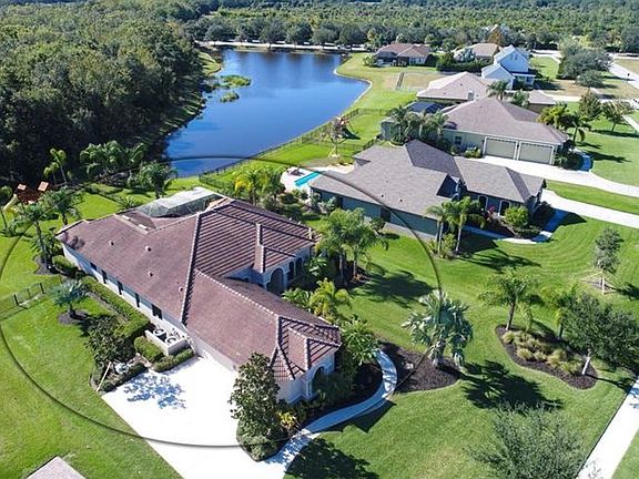 When neighborhood matters! This Arthur Rutenburg home offers country estate living with 4 bedroom/3 baths and a side load 3 car garage. A large open kitchen with an island "Rutenburg signature feature corner slider" and eat in area. Upgraded solid wood cabinetry, granite, engineered floors and architectural enhancements make this a must see. Double split bedroom plan with 4th bedroom currently used as a gameroom/flexroom with custom wine bar. Master suite with sitting area and pool access. Mahogany built ins highlight a large office with french doors. Spacious Formal living and dining rooms. The home surrounds a tropical screened pool setting w. large lanai, pool with hot tub, wrought iron fencing. Conservation land provides privacy with a pond setting to enhance the spectacular sunsets. Home features tile roof, irrigation, mature landscaping, sidewalks on a large almost one acre lot.With the opening of the Ft. Hamer bridge Twin Rivers is just a short drive to Lakewood Ranch yet quick access to I75 and all point north, while avoiding the bottle neck of University Parkway. Community features large lot sizes, community river house, with Kayak launch, playgrounds and a multitude of fishing ponds. New construction continues to enhance the values of Twin Rivers and pride in ownership is abound. If a spacious home site, central location close to world class beaches, major league sports venues, international airports and convenient shopping near by is what you are looking for. Look no more.