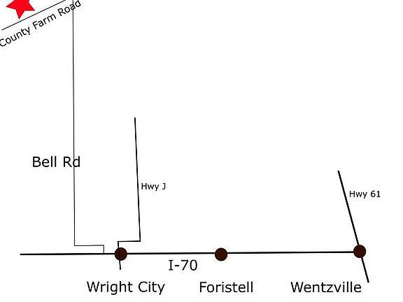 Wooded property with great homesites. Blacktop frontage. Restrictions are limited. 1.) The primary use of the property shall be single family residential 2.) Mobile homes are not permitted on the property including what is commonly referred to as double wide or modular homes. 3.) Swine (pigs) are no allowed on the property. 4.) Junkyards or the accumulation of junk, debris or trash are not permitted on the property. 5.) Vehicles or equipment kept outside of a building must be licensed or in working order. This is a new address that won't be in Google yet. Put in 2519 County Farm Rd Wright City Mo in your navigation. Agent owned