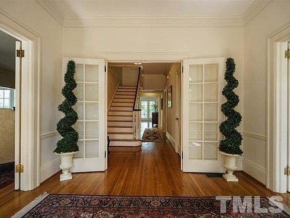 Reminiscent of the Hayes Barton Revival 1920's beginnings, nestled in a peaceful, naturalistic setting w/ amenities for today's style & living, large-scale entertaining w/ Carter Skinner/Caviness renovations & expansion. Sparkling, abundant natural light, foyer with 3 sets of French glass doors, 9+ clgs, oversized gourmet kitchen & family room, elegant master suite & sitting room, sunroom with Italian tile, 5th bedroom currently study, porches, decks, elevator, 2-car garage, tons of storage & much more!