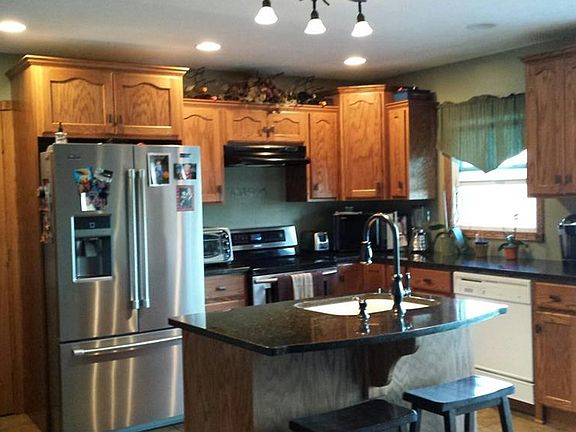 Lovely home with gorgeous granite countertops; updated oak woodwork, and oak and ceramic flooring. Fresh paint in some rooms, updated bathroom. NEW vinyl siding; NEW hot water tank. SEAMLESS gutters. FULL basement ready for your personal touches. Home sits on 1.5 acres with stamped concrete patio and extra 2 1/2 car garage (32x24) for workshop, kennels, extra parking, etc. Fabulous first home - MOVE IN READY! Great for down-sizing also. Not a thing to do before moving in. Right across the street from the New London Reservoir Park, with swimming, fishing, boating, beach, playground. Millstone Golf Course around the corner. Make this home YOURS!