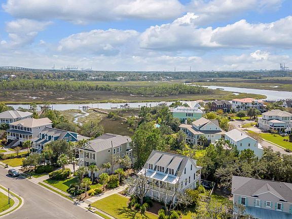 Welcome to 1543 Creek Side Way where Lowcountry charm meets Coastal elegance! This gorgeous custom home was constructed in 2018 by Marsh Contracting, best known for their new builds and meticulous renovations along Shem Creek, within I'on, Daniel Island Park, Old Village, Sullivans Island and most recently in Bluffton's exclusive Montage Palmetto Bluff. 1543 Creek Side Way offers a classic, elevated Lowcountry style home with wide porches along both the front and rear of the home. Crisp, clean board & batten, large dormers, dark windows and an attractive combination of architectural shingle and standing seam roofing complement the exterior. Inside, find bright and open spaces, ideal for intimate family evenings in front of the fireplace or for hosting gatherings both small and large.French doors spill to a grand back porch graced by cool breezes off the marshes of Nowell Creek. The first floor Master suite also offers access to the rear porch, plus ship lap walls, very large closet with custom built-ins and a secondary laundry connection, plus a pretty master bath. Highlights of the main floor include versatile hardwood floors, a white chef's kitchen with marble island, large, window wrapped dining space, plus living room with gas fireplace, shiplap accents and built in's. Upstairs, either side of the home offers 2 bedrooms with a connected full bath. The current homeowners find these spaces ideal for two bedrooms, a large office and a playroom. The landing offers an ideal space for a sunny office nook. The main laundry room is conveniently located on this level. Also noteworthy is the expansive under home space ideal for not only parking, but storage for all your toys and additional play space. There is even an enclosed area currently used as a home gym. The current homeowners added a living fence enclosing an artificial turf yard - no more muddy feet! Beresford Creek Landing offers residents a relaxed waterfront community with a clubhouse, pool and nice dock along Nowell Creek. Store your boat in the neighborhood, with boat landings nearby. Boat to the Daniel Island Waterfront Park for lunch at Kings Tide or head to Shem Creek, Sullivans and the ICW for a day on the water. Active community with weekly food trucks, holiday golf/bike parades, visits from Santa, etc. Welcome home to the best of the Lowcountry at 1543 Creek Side Way!