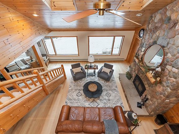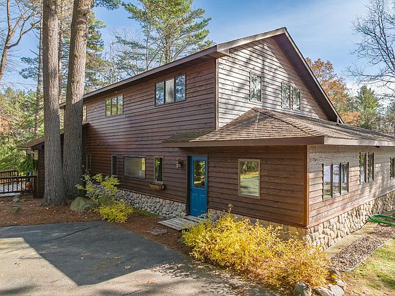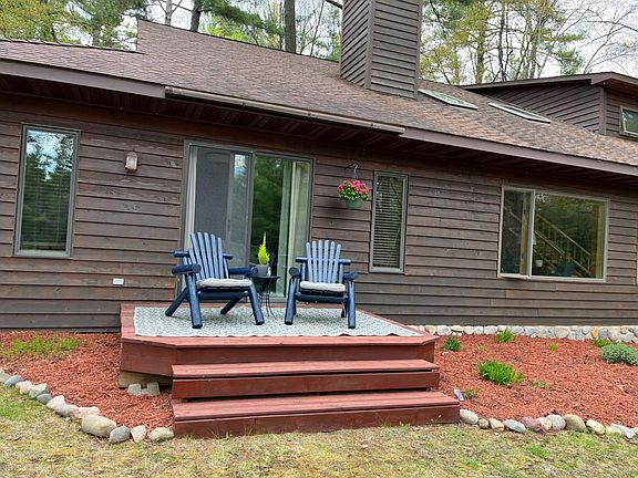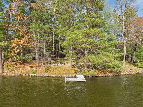 This impressive lakefront destination offers 1614ft. of level shoreline, 13 acres and a custom built 4 bedroom home with nearly 3000 sq ft. Ideal for those seeking a private setting with expansive water frontage and acreage on the Three Lakes/Eagle River Chain. The treelined winding drive traverses the wooded land, then showcases a spectacular panoramic view on the point. Constructed in 1993 & 2004 addition, this custom home sits a mere 40' from the water's edge that is teeming with wildlife. Creatively designed with an open concept floorplan, the living room/dining area offers a soaring cathedral ceiling, a fieldstone fireplace as a focal point, note the new gleaming maple floors. The master ensuite includes a sitting area, walk in closet, spa tub and tiled shower. An updated kitchen, remodeled full bath/laundry, family room, office round out the main level. Upstairs has 3 more spacious bedrooms, jack-n-jill full bath. Garage fits cars & boats, 1064 sq ft. Spectrum Internet.