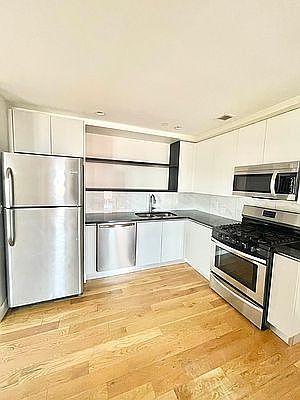 Very Large Bedroom plus a children's bedroom, office space or walk in closet , 1 bathroom plus a balcony available in a modern Midwood development! This unit features high-end modern appliances, gorgeous hardwood floors and spectacular bathroom finishes. Building Amenities include a furnished roof deck, gym, package room and washer/dryer hookup available in unit! Please text/email/call to schedule a tour!