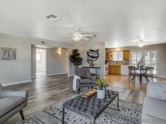 RARE FIND!!! Don't miss this multi family living opportunity in Granite Hills area of El Cajon. SOLAR OWNED to keep electricity bills low, each floor has a dedicated heating and cooling system. French doors lead to back yard with grass area, two patios and sparkling pool. This spacious home boasts 6 bedrooms + bonus room situated on two separate floors affording privacy for shared family living. Large master bedroom on each floor, for a total of 3 bedrooms, 2 baths, great room, kitchen with combo dining room on the main level and upstairs you will find 3 bedrooms + bonus room, 2 baths, complete with living room and kitchenette. Enter the first floor to find a great room that opens to a large kitchen w eat-in dining room, and large pantry/storage closest under stairs. The second level is a custom-built addition (built in 2006) specifically designed to accommodate multi family living. Newer windows, vinyl plank floors downstairs, ceiling fans throughout and two walk-in closets. This home has tons of space! Perfect for families looking to combine households. This home has been lovingly lived in by owners with their parents, children and extended family since 2006. It is now time to size down!