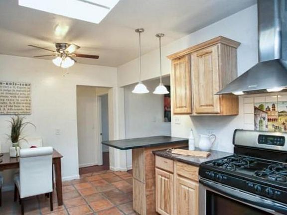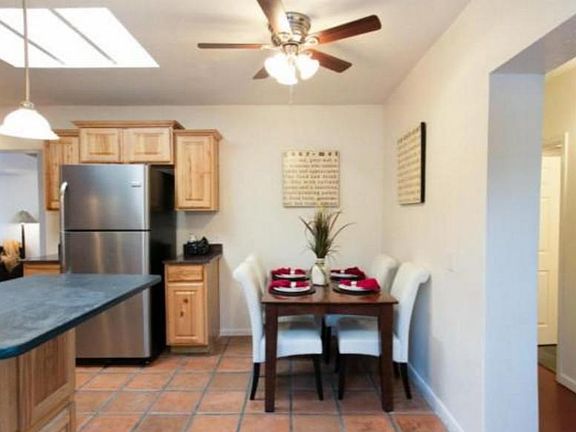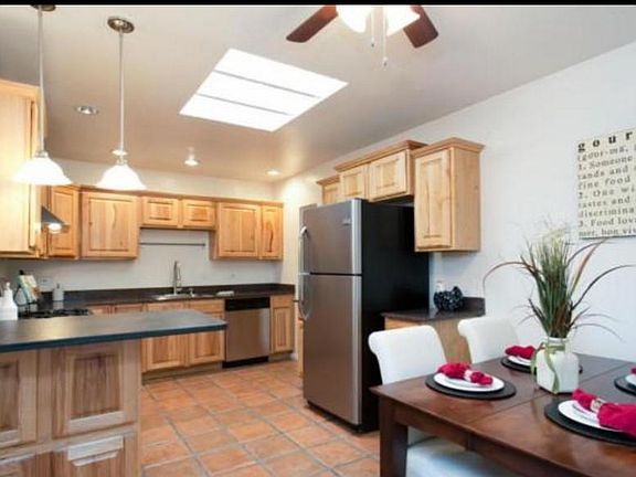 4bd/2ba home in Jefferson Park at Cherry/Linden with 3 CAR GARAGE Pets allowed (subject to approval - meet and greet required). Close to Banner UMC (.6 mi) and UofA (1.3 mi). Updated kitchen with a combo granite/slate counters, alder cabinets & SS appliances. Washer/dryer in full laundry room. Covered deck in walled backyard. Central A/C and ceiling fans in all rooms. 2 large separate family/living rooms - one with fireplace and natural edge mantel. Top down/bottom up room darkening blinds in all bedrooms. Concrete or tile floors throughout. 1805 SQ FT. Easy care yard. 3 car garage. This home is offered as NON-SMOKING. Available August 2023 to July 2024