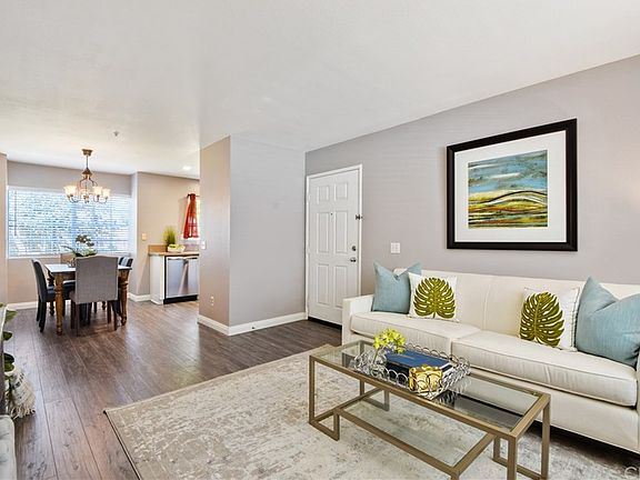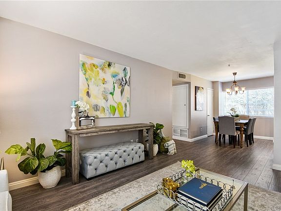 SINGLE STORY-(Ground Floor) Rosa Maria newer Condo with 2 Bedrooms and 1.75 Bathrooms. This is a turnkey former model house on a cup de sac. Upgraded Kitchen with Brand NEW stainless-steel free standing, dishwasher and microwave. Cozy Kitchen w/Corian Countertops & Recessed Lighting. Beautiful NEW wood floors in Living Room, bedrooms and kitchen. Large Master Bedroom with walk-in closet and patio. Mirrored Closet Doors in Second Bedroom. Freshly Painted with new wood blinds. Inside Laundry. Amenities Include: 2 Pools, 2 Spa's & a Sport Court. No Mello Roos.