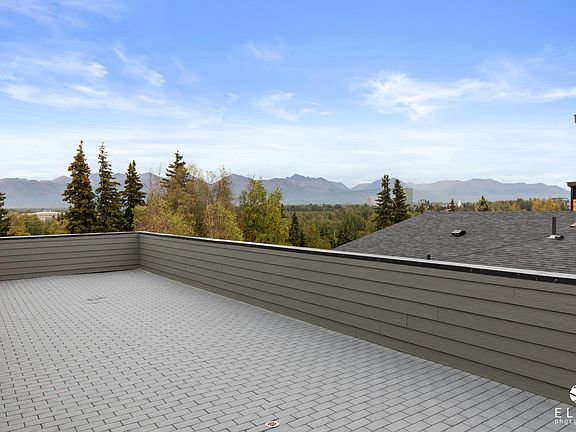 Your retreat from the modern world. Desirable South Addition condo with spacious 841 SF rooftop deck w/unobstructed 360 degree views to relax on after a long day. Contemporary design w/linear fireplace, floor to ceiling windows with stunning views of the Chugach Mountains. Crisp white island kitchen w/refrigerator included. Master with en suite bath with windows for natural light, barn door, dual
