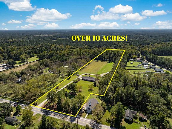 Experience the best of both worlds! Serene country living and convenient proximity to Charleston's vibrant coastal lifestyle awaits you at this charming home. Nestled on 10.7 private acres in Ridgeville, this meticulously maintained brick ranch estate offers privacy, functionality, and the potential to create your dream horse or hobby farm, all within an easy drive to local shops, restaurants, beaches, and the historic charm of downtown Charleston.The 2,541 square foot main home features 4 bedrooms and 2 full baths, plus a frog, blending traditional Lowcountry comfort with thoughtful updates. A spacious great room welcomes you with tray ceilings, custom built-ins, and a wood-burning fireplace, creating a cozy centerpiece for family gatherings. The formal dining room and eat-in kitchen offer multiple options for entertaining, while the granite countertops, new pantry doors, and updated backsplash (2025) elevate the kitchen's modern appeal. The enormous primary suite is a true retreat, complete with porch access, a sitting area, and a generous walk-in closet. Three additional bedrooms provide flexible space for guests or an office. Throughout the home, enjoy new LVP flooring (2023), custom blinds, new fans, and abundant natural light. Outdoor living is equally inviting with a full front porch, side porch, and enclosed back patio, offering year-round enjoyment of the peaceful, rural surroundings. Beyond the home, the property is designed for versatility and privacy. A massive 4,000 + sq ft metal workshop offers work or play options and is ideal for equipment, hobbies, or a future barn conversion. Two wells provide flexibility for home and agricultural use. The expansive open acreage is high and dry and ready for your farm animals or agricultural pursuits, and there are already a few designated areas for the smaller pets such as a fenced in backyard and a separate fenced area for goats or chickens. The list of recent improvements is extensive, but the highlights include a new roof (2024 - and that also includes the outbuildings) and all new custom landscaping enhancements added over the past five years. With no flood insurance required and the location in the highly rated DDII school district, this property just continues to check all of the boxes you need to make it your home. Whether you envision keeping horses, starting a small farm, or simply enjoying the quiet rhythm of country life, this property delivers it all. Meticulously cared for and truly turnkey, this Ridgeville retreat is ready to welcome its next owner to enjoy the perfect blend of the Lowcountry charm you are looking for!
