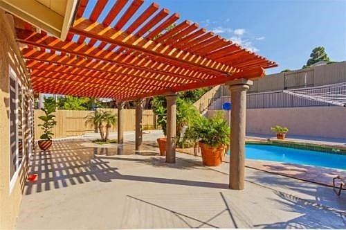 OPEN TO ALL OFFERS! Gorgeous totally remodeled single level home gated front entry with solar heated sparkling pool. Travertine floors throughout and granite counters stainless appliances solid alder wood doors inside new forced air gas heater new water heater smooth ceilings stainless refrigerator stays permitted pool room with full bath beautiful hardscape around pool & terraced above. All plumbing & electrical are new. Covered patio. Granite & travertine in bathrooms. Stunning remodel!
