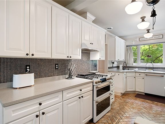 Modern rambler design hosts elements to create a unique home with key features. Enter the main hall through the Dutch door with gleaming hardwood floors. Immersed by the elegant dining room with a breathtaking Restoration Hardware chandelier overhead. The kitchen, just through the butler door has a breakfast area to watch as you cook on your Café Series Range & well-equipped kitchen. Large windows in the living room are positioned to allow light to flood in. A gas burning fireplace warms the center of the room & designed for entertainment. The back porch can settle your evenings while having a glass of wine, listening to nature. Large master bd, redone with hardwood floors & built-ins for storage closets. Master ba is redone as a luxury spa with deep soaking tub & glass enclosed shower, surrounded by marbled tile. Another bedroom with full hall bathroom for family/guests while above the kitchen is your 3rd guest suite & den/meditation room. 2-car attached garage + parking pad