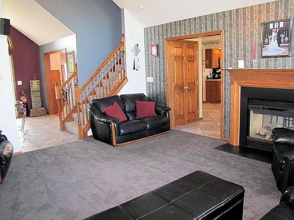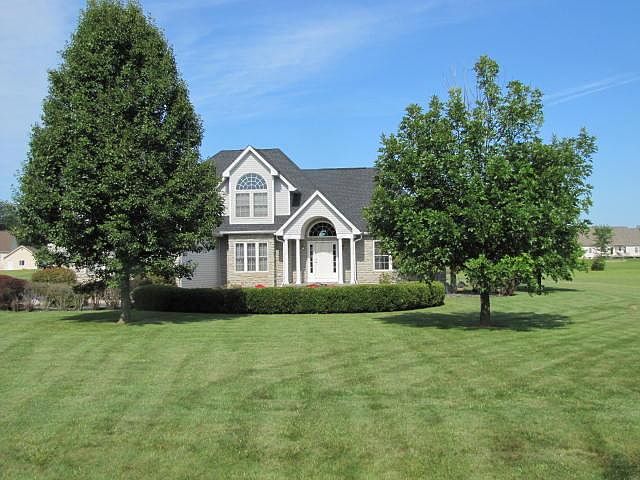OPEN SUNDAY 9-24 2-4pm THIS HOME WONT LAST LONG AT THIS AMAZING PRICE!!!Contemporary country living! Upgrades galore! Original owner, custom built located on a spacious 1.456 acres Welcoming 2 story foyer. Desirable 1st floor Master Suite showcased by a tray ceiling & two walk-in closets. Impressive living room w/cathedral ceiling. Plenty of light flows in through wall of windows with patio doors. Huge eat-in kitchen w/2-sided fireplace. Upstairs are 3 bedrooms and a full bath w/double vanity . 6 panel wood doors thru out. The full basement has extra high DryLok-coated walls & rough-ins for a full bathroom. Extra deep garage. Home is also equipped w/built-in basketball hoop, natural gas hookup for your grill, & automatic house generator. The new roof and Culligan water softener syst