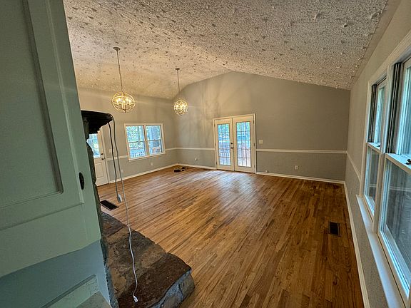 This home sits on .6 acres right outside the town of Bostwick in Morgan County. Just a 10 mile drive to historic Madison, just over 20 minutes to Athens, and 14 miles to I-20. Two new ceramic tile baths. The kitchen has granite tops and stainless appliances. Brand new hardwood floors added throughout the house and It was just painted. A master bedroom with its own bathroom and two bedrooms that share a bathroom. A large great room with a large stone fireplace and tall vaulted ceilings. The home is all electric with central heating and air. There are 3 porches. The gravel driveway allows plenty of parking. If you're interested give me a call or text. This home has a 1 year signed lease. A $2000 security deposit is due at signing. Renter is responsible for all utilities. Each month rent is due at the 1st of the month with a $10/day late fee. There is no smoking allowed in this house. Pets are allowed with a $1000 non-refundable pet fee with the security deposit and an additional $50/ month per pet. Doesn't come with microwave or washer and dryer but does have the hookups in the kitchen closet.