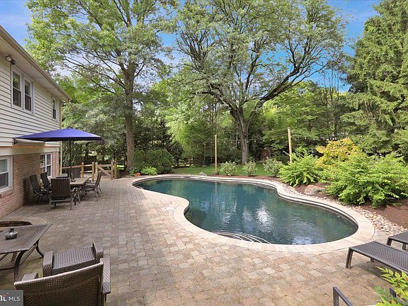 Classic Wyomissing sprawling split-level on a lovely tree-lined street in Birdland is where you’ll find this gem, sitting on a spacious and private .50-acre lot, fully fenced in yard. Surrounded by lush mature landscape and a lighted hardscaped walkway and entrance leading to the front door and extensive hardscaping with multi-level patios all surrounding a stunning heated gunite black-bottom pool in the back yard. This back yard has the 'wow' factor! Inside, you’ll appreciate the classic feel of this home, mingled in with current decor starting with the flagstone tiled entrance and hardwood floors which run throughout the home. The living room is large with a bay window to allow for plenty of natural light and views of the tree-lined street. This opens to a formal dining room, which flows into the kitchen with a back door leading to the pool and grilling area. Up a few steps are 4 very generous sized private bedrooms with the primary bedroom having a full private bathroom. The hall bath is also located on this level. A few steps down is the family room with a gorgeous stone wood burning fireplace, bar area and another door leading out to the pool area. A half bath is close by for a quick trip from the pool, as well as an office and access to the garage. Down one more level is yet another finished off area, perfect for another hangout area or gym area, as it is currently being used. A nice sized storage/laundry room is also located on this level. You'll appreciate the brand-new high efficiency HVAC system and brand-new roof. This home is much larger than it appears from the outside so whether you’re entertaining your guests inside or outside, Christmas parties or pool parties, this is the perfect family / friends gathering spot!