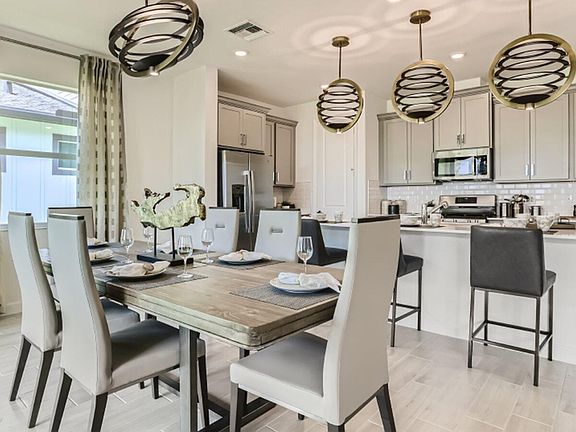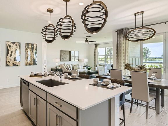 This new single-level home features a convenient bedroom and full bathroom off the foyer, leading to a versatile flex space ready to be used to meet the evolving needs of the home. The inviting open-concept layout is designed for seamless entertaining and multitasking, complete with access to an outdoor lanai. Three bedrooms are tucked away to the side of the home, including the luxe owner's suite in a private back corner, offering direct access to a spa-inspired bathroom and walk-in closet.Prices, dimensions and features may vary and are subject to change. Photos are for illustrative purposes only.
