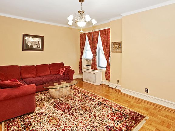 Large 1 bedroom Condo in this Pre-war building with generous sized rooms. This unit features a remodeled kitchen with a new sub-floor, commercial tiles, Quartz counter top and backsplash, stainless steel sink, and small flat screen TV. Tons of deep maple wood cabinets including a broom closet, sponge drawer, knife drawer, an deep drawer for pots and pans, and double ceiling fan. The spacious living room has parquet floors and tall double windows. Last year (2016) bathroom tub was reglazed a new vanity was put in. Huge Bedroom with a brass and crystal chandelier, double window, and a/c unit. Hallway has mirrored sliding glass door closets with extra space on above, extra linen closet and coat closet as well. The building is well kept with a live in super, new elevator (2015), ADT alarm hookup, intercom system, and laundry area with new card operated washer/dryers. Heater and hot water are included. Maintenance is $234/mon, including an assessment of $21 that ends January 2018. Taxes approx $1,600/year. Pets not allowed, but Sublease is ok. All offers submitted with mortgage prequalification and buyer financial profile.