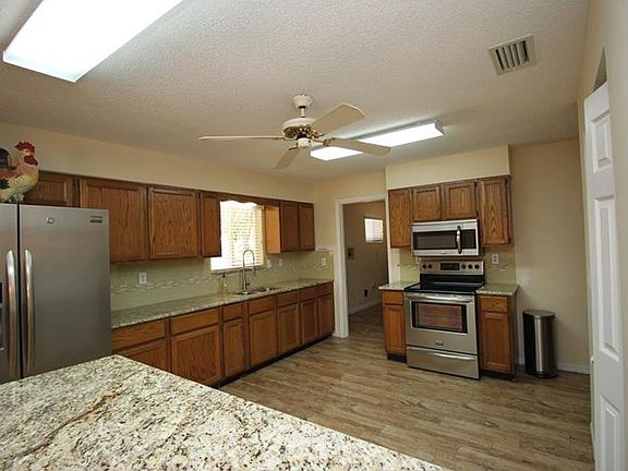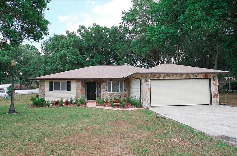 COUNTRY COMFORT! Don't fence me in... over 1/2 acre surround this majestic treed fenced lot. OUT but not far out, close minutes to shopping, restaurants and schools. Open foyer entry leads your to large family room with real wood burning fireplace, ceiling to floor highlights fireplace with stone. Newer tiled floors with wood look through out. Newer paint and fixtures, move in ready. The cozy dining room will host intimate meals for friends and family and opens to kitchen and living areas. Experience the joy of cooking in this fully-equiped kitchen with new stainless steel appliances, newer tiled back splash, granite counter tops, tiled back splash and closet pantry, plenty of room for center island (extra granite in garage). Master SWEET... split bedroom plan with large walk in closet, on suite bath, newly remodeled walk in shower, sink and tiled floors. Spacious Florida Room with wall to wall windows that overlook large fenced back yard and sliding glass doors to brick paved open patio. NO EXPENSE SPARED in 2nd and 3rd bedroom closets with container store organizers. Meandering brick paved sidewalk to neatly designed fire pit. Perfect setting for a relaxed evening roasting marshmallows with family and friends. Newly installed water system that removes rust. REST ASSURED in quiet seclusion of beautiful treed yard with plenty of space for detached garage or parking for RV or boat, over 1/2 acre lot, NO HOA fees. New roof completed in 2014.