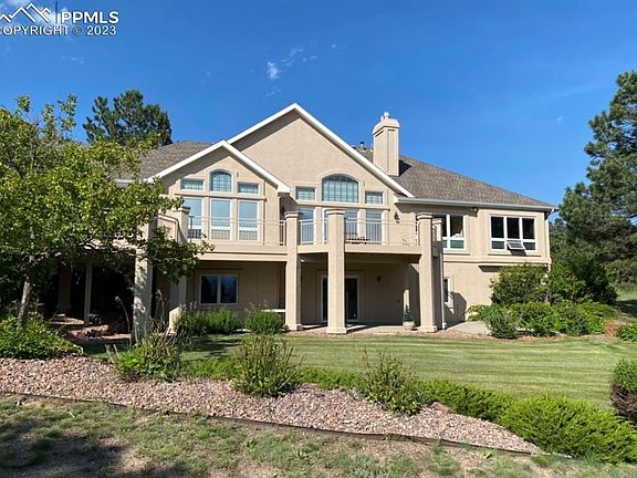 You will love this Gorgeous Pleasant View Estates Rancher on 5 acres near Fox Run Park. Views of Pikes Peak from your back deck, Primary bedroom, Great Room, Kitchen and even from your Walkout lower level! Enjoy the views while listening to the wind rustle through the beautiful, mature trees. So close to all amenities, yet you feel as if you are on a rural, country estate. So many wonderful features that will make you want to call this one home ~ Main Level Primary bedroom with enormous walk in closet~ Vaulted ceilings in the Great room~ Pella Windows ~ Huge walk in Panty~ Gorgeous slab granite counters in the Kitchen ~ 3 Dishwashers~ Sub Zero Refrigerator ~ Thermador CookTop~ Hickory Cabinets~ 4 inch Oak wood floors~ 2 furnaces~ 2 water heaters~ newer Stucco~ AC on Main Level ~ Central Vac~ Main level Office~ spacious Dining Room ~ Mudroom off Kitchen~ heated 3 Car Garage with ample space for all the toys~ attached heated workshop~ media space~ wine Room~ 4 lower bedrooms - One is an ensuite , 2 bedrooms are connecting to a Jack and Jill Bath. So much storage! Unbelievable property!