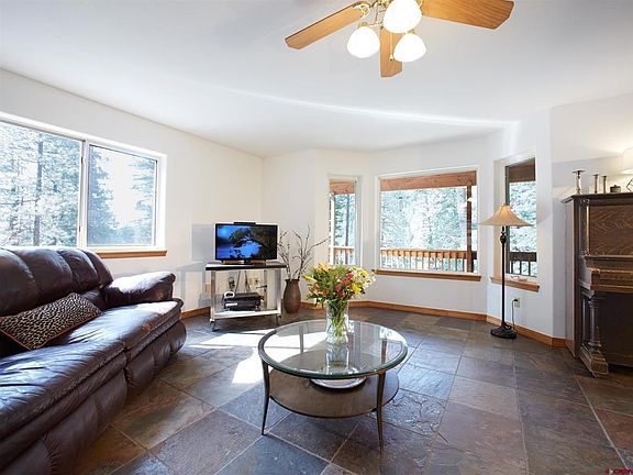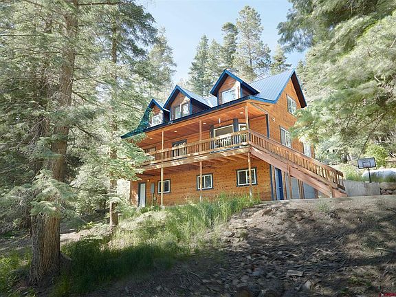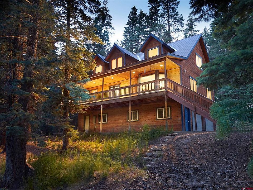 Nestled in the tall pines at the entrance to Enchanted Forest subdivision, just 15 miles from downtown Durango, this 2172 SF home on three acres enjoys added privacy backing to 38 acres of National Forest. At 7803' elevation, this home enjoys easy, year-round access off of paved County Road 240. There are two offshoots off of the main drive providing turn around space for trailers and ample parking and storage areas for RVs, boats, or additional vehicles. The home and driveway are south facing allowing for excellent southern exposure- better snow melt and more natural lighting. With easy access to Durango and Bayfield; endless recreational opportunities at both Lemon and Vallecito Reservoirs which are less than 15 minutes from this property. The inviting covered front porch provides entry to the main living level where you will find an open concept- living room, kitchen, dining and office. The interior is clean and bright with fresh paint and in-floor radiant heat is efficient and cozy. The main level features flagstone entry and wood flooring. A wood fireplace, ample storage and a powder room can be found on this level. The kitchen is spacious and features pine cabinetry, tile flooring, new dishwasher (never used), and pantry. All bedrooms are located on the upper level; a specious primary suite with vaulted ceilings, walk-in closet and full bath. The two guest bedrooms are spacious and share a full bath. Dormer windows provide plenty of sunshine to these rooms. Lower level features a living area with a bonus room and full bathroom. There is a separate entrance to this space providing flexibility for home-office or separate living quarters if needed. Direct access to the attached, oversized two car garage with workspace and accessible mechanical. Outside, enjoy the tranquil setting from the covered porch with views to the south and the breeze blowing through the tall pines and spruce. The trees provide shade and help keep the home cool in the summer months. Plenty of opportunities to hike and explore on your own property or the adjacent National Forest lands. A seasonal creek can be enjoyed in the spring months. The newly, custom-built pine firewood shed is located in the driveway for wood storage. This property pays less HOA fees due to minimal use of subdivision roads. Owner completed professional fire mitigation around the house. The septic system has been inspected and Transfer of Title to be issued. Internet is currently provided by Visionary while CenturyLink is newly available with faster speeds more reliable service. This home is ready for its new owner!