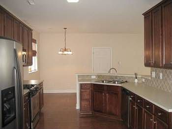4 bedrooms with 2300+ square footage. Rocking chair front porch. Hardwood floors, guest bedroom and full bath on main. Formal DR with crown molding and chair rail. SS appliances, gas stove, ceramic backsplash and 42' cabinets. Great room with marble surround fireplace and entertainment alcove. Large master suite with a walk-in closet to die for. Additional storage inside closet. One year home warranty. Zoned for new William A. Hough High School.
