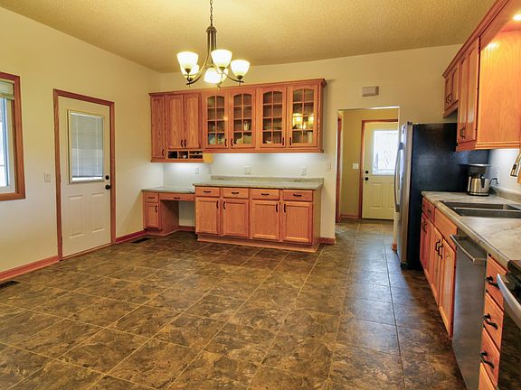 Priced to sell!! 5 Acre Hobby Farm near Center City. 3-4Br/3BA One Story house with a walkout basement. Seller has replaced the kitchen appliances in 2021, has updated the baths and kitchen, refinished the hardwood floors, replaced the hot water heater in 2021. Detached 2 car garage is fully insulated and heated(Porpane), plus there is a shed, large Barn, Corn Crib, and the open sided building, which the seller would like to rent back until the Spring of 2022. Property is part of a recent plat, "Meadowlark Estates", which is approved by the County, and should be recorded by the end of August. Note: The extra driveway approach along the southwestern boundary will be relocated to the west 5 acre lot by the new lot owners. Enjoy the beautiful scenic Country views off of the large deck in the rear of the house. Hurry!!