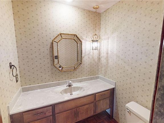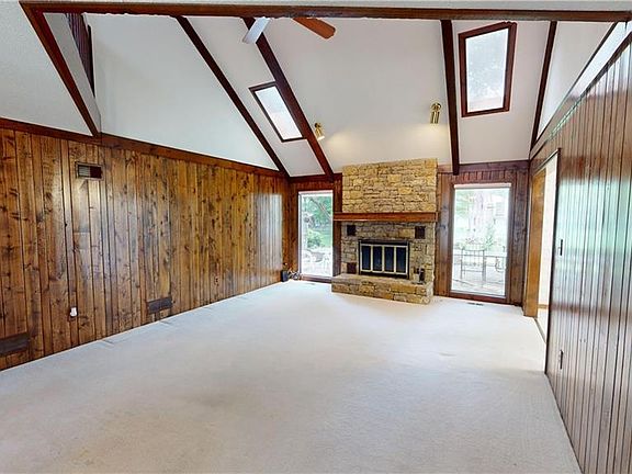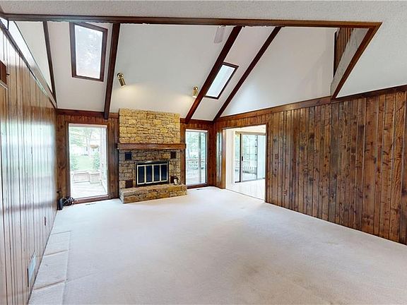 This incredible 1.5-story home in Lenexa presents a fantastic opportunity for comfortable living. The first-floor layout, vaulted ceilings, and cul-de-sac setting offer a perfect blend of convenience and tranquility. With some light cosmetic updates, you can instantly add value to this spacious home. The impressive Great Room boasts vaulted ceilings with skylights, creating a bright and inviting space. The warm wood paneling and striking stone fireplace further enhance the cozy ambiance. The spacious Eat-in Kitchen opens to a large covered deck, providing an ideal spot for outdoor dining and relaxation. The 1st Floor Master Suite features a spacious bathroom with separate vanities, a shower, whirlpool tub, and walk-in closet. Additionally, the main level includes a formal dining room, a guest half bath, and a convenient laundry room. Upstairs, three large bedrooms await, and the finished lower level offers a Recreation room and an office space. Conveniently located near top-rated schools and shopping centers, with easy highway access, this home offers the perfect combination of comfort and convenience. Don't let this opportunity to turn this into your dream home pass you by!