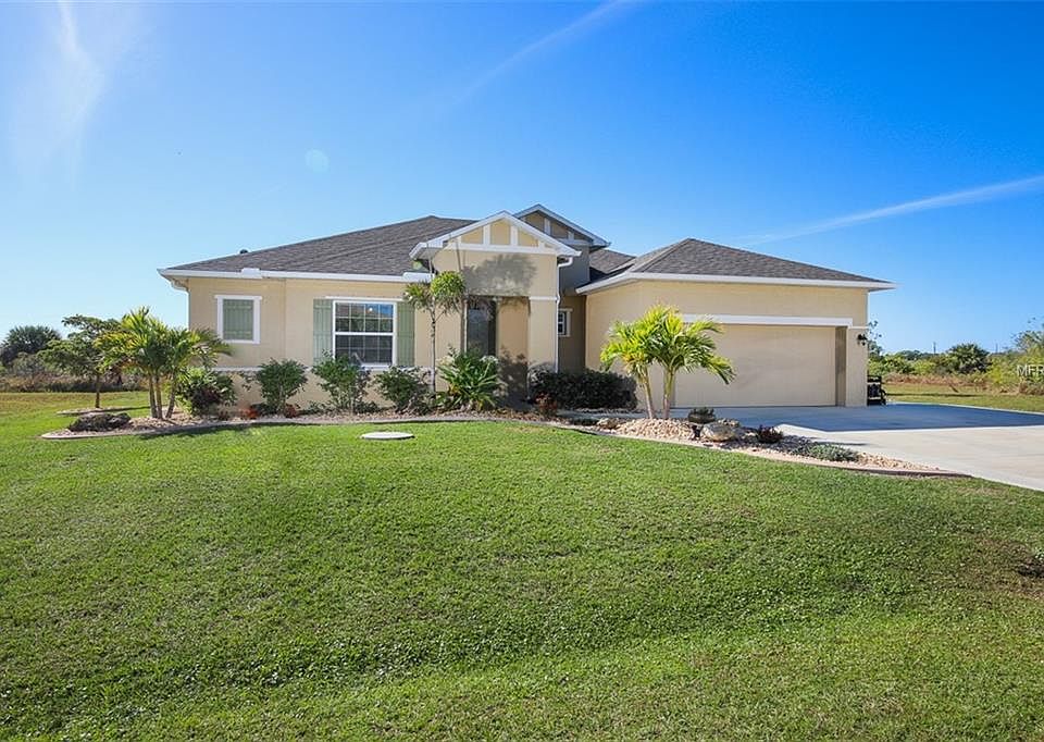 Located on a TWO LOT PARCEL which has been combined in the tax rolls, this spacious 3 bedroom, 2 bath , den, pool home in the growing community of South Gulf Cove welcomes you to Florida living! Newly completed in 2016 the homeowner has done extensive upgrades to add value, including widening the driveway, adding pool and deck, landscaping and curbing, installing shed, carpeting and tile. The roomy floor plan is perfect for entertaining or comfortable family time. A very open stainless kitchen includes over 8 of breakfast bar on the island, wall oven, wood cabinets and walk in pantry. This flows to the great room/family room and adjoins a large dining area. There is a separate den/study with French doors that can be closed to the living area. The master bedroom is elegant and the ensuite bath is uniquely wide, with dual sinks, a glass shower and very roomy walk in closet. The hallway in this split floor plan adds separation and privacy and takes you to the generously sized guest rooms, guest bath and closet storage. Now on to the outdoors! The lanai and heated saltwater pool are nothing short of spectacular, you could do laps in that pool! The backyard is peaceful and private and as mentioned this is on two lots and includes a 16 x12 shed with additional loft storage. A paved walkway and curbed landscaping keep your outdoor oasis pristine . Please scroll through the pictures and view the attached videos to appreciate this lovely property.