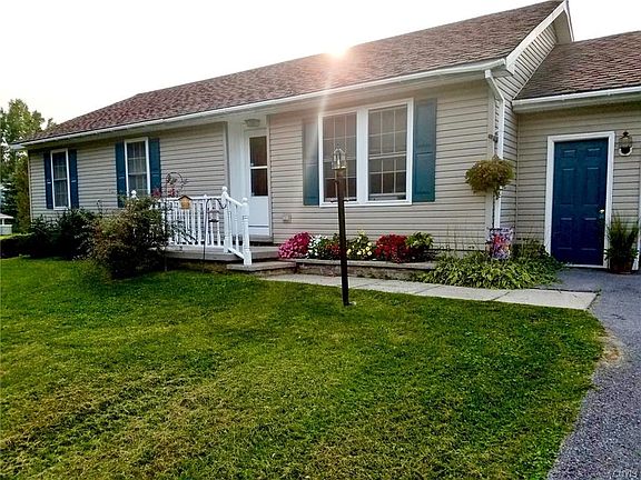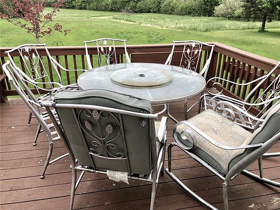 Ranch home with attached 2 car garage and paved driveway sits on 2.84 acres. The home sits back off the road with mature trees in the front yard and in the back yard more trees, and a pond. Sit on your back deck and enjoy the view. Inside you'll find a kitchen and dining room combination, laundry, living room and 3 bedrooms and 2 baths. The master suite includes a good amount of closet space and a Jacuzzi style tub. There is a full dry basement with tall ceilings, plenty of room for storage and more.