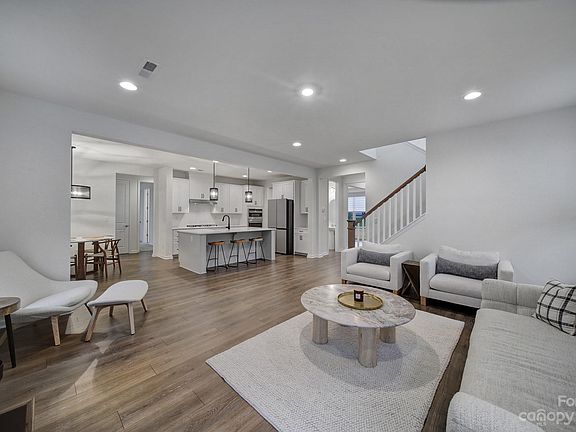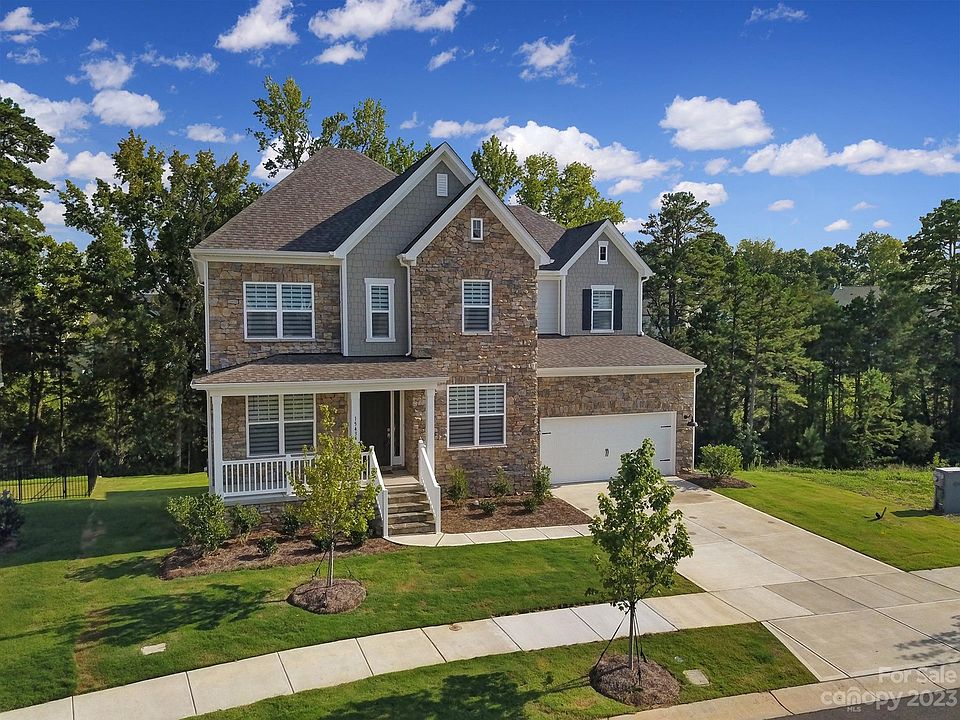 Stunning, like-new home in the highly desirable Walden community in Huntersville. Rocking chair front porch welcomes you into this immaculate 5 bed, 4.5 bath home with an open concept layout, wide-plank flooring and stylish lighting. Gourmet kitchen features quartz, gas cooktop, double oven, island with seating, farmhouse sink, walk-in and butler’s pantry. Breakfast area, family room with gas fireplace and dining room with tray ceiling are perfect for relaxing or entertaining. Dedicated office with French doors is ideal for those working from home. Bed with full bath on the main level. Spacious primary with ensuite offers two vanities, shower, freestanding soaking tub, amazing walk-in closet and access to the convenient laundry. 2 additional beds, full bath and bonus on the upper level. Want more? Basement offers 1,120 finished sq. ft. including a bed and full bath. Screened porch and deck. Clubhouse, pool and playground. Minutes from Downtown Huntersville, LKN, Charlotte, I-77, I-485.