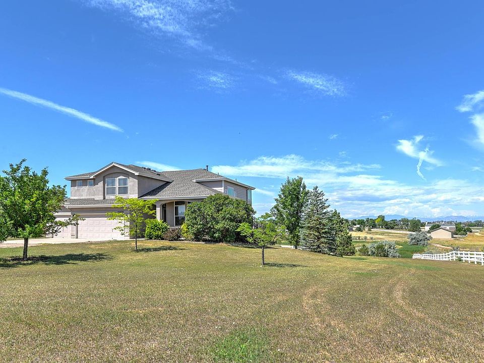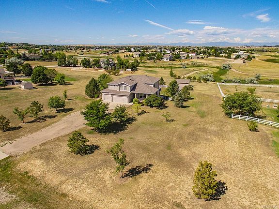 Buyer changed their mind. Now this is your turn! Imagine waking up in your own piece of Heaven. Beautiful home with huge partially covered back deck overlooking mountains, open space and trails. Great entertaining space with the upper deck and more below with awesome stamped patio as you exit the walk out basement. Three generous sized bedrooms, 2-3/4 baths and dedicated laundry room with sink. A Spiral Stairway flows up to the loft overlooking the family room which boast windows from floor to ceiling and would be a great sanctuary for the teens, or extra office/living space. Well kept home, w/wood, carpet & tile floors. Master has a 5 piece bath and walk-in closets. Kitchen with a breakfast nook and a formal dining room as well. An unfinished walk-out bsmnt is there for you to do with as you please. Out back you will find another detached two car garage for your toys and a riding mower for your almost 2 acres! Country living close & city in the sought after Todd Creek Farms.