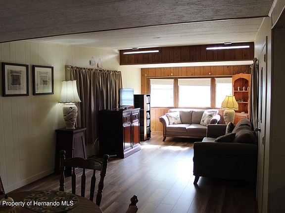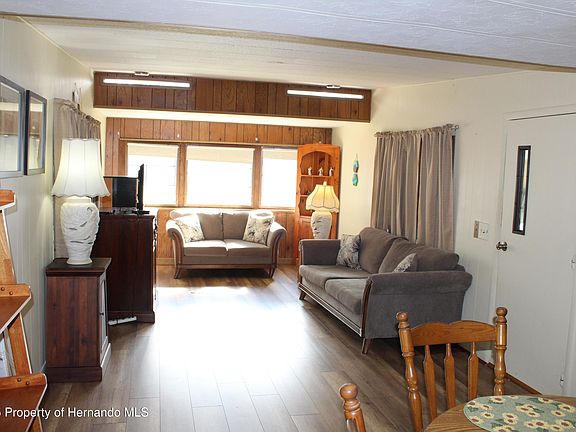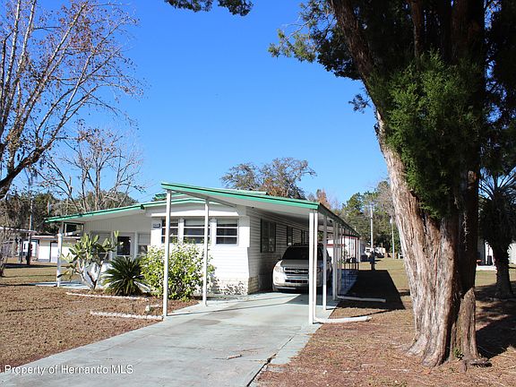 Winter retreat or affordable living? This property will fit the bill. Enter this home through the screen front porch. Nice size rooms and 2 full bath rooms. Keep your car out of the hot sun under the covered carport with a long driveway to accommodate other cars. The best part is that there is NO lot rent or HOA. Located on a dead end street in a private location away from the high traffic areas. Close to HWY 50 for convenient shopping and entertainment. The lot is level with a sidewalk to the 2 sheds in the rear of the property. Washer and Dryer located in one building and the other one is large enough for ample storage.