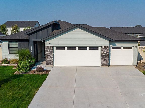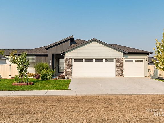 Welcome to this stunning 3 bed, 2 bath, single-level home w/ 1,694 sq ft of upgraded living space! The split bedroom plan offers privacy, while the primary suite features a walk-in closet, dual vanities, & a walk-in shower! The open, vaulted living, dining, and kitchen areas are perfect for entertaining, & a flex bonus room provides versatile space for a home office, play area, or anything you need. Enjoy a 3-car garage, back patio pergola, & 75 ft of garden space w/ retaining wall. Great Neighborhood w/ friendly neighbors! This cozy home includes remote accessibility for thermostat, door locks, & ADT security w/ extra cameras. Located near walking trails, a community park, Lake Lowell (8 min away), & Sunnyslope Wine Trail. Just 14 minutes to Costco & 30 minutes to Boise. Sellers are motivated and ready to move anytime! Quick Close and Move in Ready!