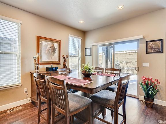 One of Cardel Homes finest, custom, ranch homes is in like new condition with loads of upgrades and a Cardel finished basement. You'll love the light, bright, open floor plan. The spacious kitchen features an island, granite countertops, tiled backsplash, stainless steel appliances and a pantry. Gleaming hardwood floors are throughout most of the main level. The home offers four spacious bedrooms and three baths. Enjoy the patio and views. Solterra offers residents a large clubhouse, infinity pool, and borders 2200 acres of open space and miles of trails. Easy access to the mountains, light rail and Denver.