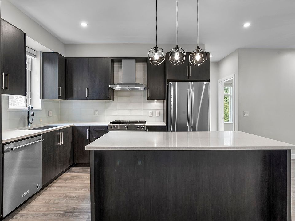 Corner homeExpansive windowsNatural lightLush greenbelt viewsGourmet kitchenQuartz countersStainless steel appliances