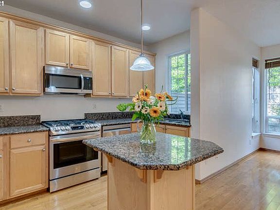 Gorgeous Townhome, kitchen with new gas appliances and island, maple cabinets. Gleaming dark wood floors on the main level with gas fireplace and slider to patio with pavers and raised garden beds. NEW APPLIANCES, CARPET & PAINT. Vaulted ceiling in large Master with Soaker tub. Washer/Dryer included. IT SPARKLES - don't miss this one! PLEASE remove booties when going outside -- put them back on when coming back in. Park ONLY where noted.