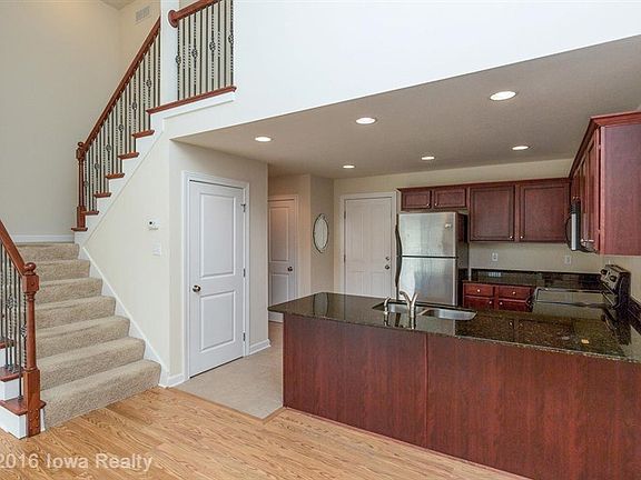 Southern exposure 2 story townhome with 2 bedrooms and 3 bath areas. Open kitchen with tile, granite, SS appliances, pantry closet, plus plenty of counter space with breakfast bar open to the dining area offering plenty of room for your entertaining. The slider leads you to the patio area plus green space. Upstairs you will find a laundry closet, full bath, second bedroom, and spacious master suite with 3/4 bath and walk in closet a great roommate set up. All 3 bathrooms equipped with granite countertops. The lower level is unfinished with an egress window and painted floors ready for your future finish. Two car attached garage with epoxy floors. Minutes to stores, bike trails, Waukee schools. Quick possession possible.