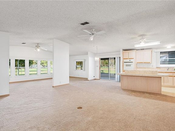 Custom built Palm Harbor home on an oversized lot on the 2nd fairway in Brookridge. New carpet, fresh paint, cleaned and ready to move in! Double Pane tinted windows, newer HVAC & roof over give you low utility bills. You need to see this home to appreciate the HUGE amount of storage space and oversized rooms. An open floor plan with huge living rm, updated island kitchen, and Fla room with bar overlooking the golf course is perfect for entertaining and easy cleaning. Newer appliances, cabinets & countertop along with an updated MB shower. Oversized bedrooms with HUGE walk-in closets, and reach-in closets. 1 car Carport and screened in porch leads to a HUGE storage shed/golf cart gar. Extra large screened porch on the opposite side opens to the fenced back yard. An RV pad with 50 amp outlet will fit a large RV. You will not be disappointed with this home. Come see it to make it yours!!