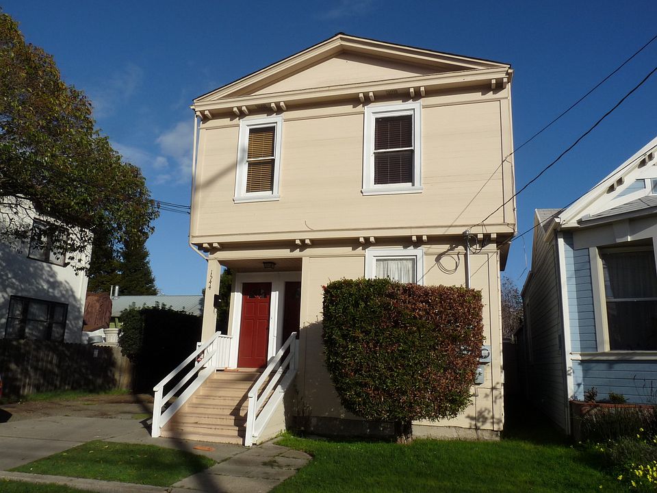 Classic early 1900s upper duplex, period detail, built in, etc. ~Eat in kitchen ~Two large bedrooms (approx. 13x12 & 12x12) plus one small bedroom (9x9) ~Bathroom has been updated: vanity, toilet, flooring, wainscoting, etc. ~Vintage clawfoot tub w/ diverter. ~Large, eat in kitchen with large, vintage O'keefe & Merritt oven/stove. Sink, dishwasher & cabinets are in their own adjacent space. ~Laundry room w/ room & hookups for full size Washer/Dryer ~New, large, sturdy deck off kitchen ~One off street parking space ~One block from main bus lines, including fast Transbay bus to SF One year lease, cats negotiable pending cat resume and additional cat deposit. Tenant pays gas, electricity, garbage & recycling. One off street parking spot included in rent, washer/dryer hookups on site. Tenant splits one time 30% rental fee with owner. Unit available now, give our office a call to schedule a showing. 510.522.8074 One year lease, tenant pays for gas, electricity, garbage & water. Unit has one off street parking slot, laundry hookups and accepts cats only pending cat resume and additional cat deposit. Unit available now, give our office a call to schedule a showing. 510.522.8074