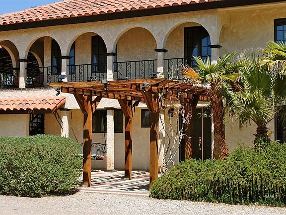 Custom Spanish Style Hacienda on 2.5 Acres. Custom kitchen with soap stone countertops, soap stone farmhouse sink, professional grade stainless range and hood, and full pantry. Enjoy the view with many windows overlooking the beautifully landscaped yard and pond. Large living room with brick fireplace. Make your way upstairs where two of the three bedrooms have their own entrance to the upstairs patio and balcony. Master bedroom is large with brick fireplace and walk in closet. Fresh new carpet in bedrooms and stairs. Previous garage was converted into extra rooms/storage area. Perfect yoga retreat! Entertainers dream patios, porches and deck areas. You will find yourself never wanting to leave! Step outside to an oasis for everyone in the family. Soothing pond and waterfall with natural filtration system built with volcanic rock. Above ground salt water pool with redwood deck. 350 Square Foot heated and cooled art studio! Outdoor fireplace, Garden and Paid Solar! To finish this off there is a 2,000 square foot workshop. 40x50 with 12x12 Roll up door, 2 personal entry doors, 14ft eves, bathroom and its own swamp cooler. Covered 16x50 RV Parking on both sides!