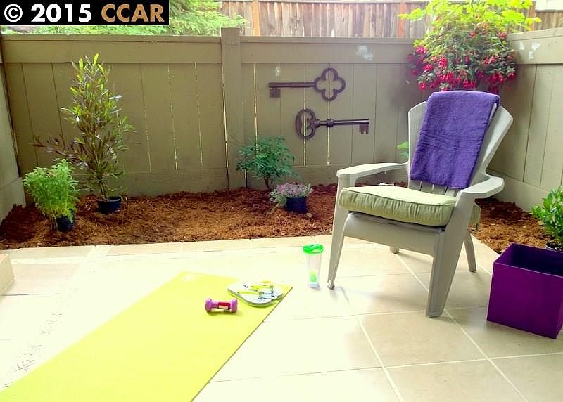 Private, lower end unit. Secluded patio for guests, yoga, morning coffee. Updated kitchen, baths, paint. Easy care laminate floor. Doors and windows replaced. Inside laundry. Nice storage & closet space. Walk to shop, dine. Bus to BART at corner. Great Value. OH 6/6 & 7. See It - Love It!