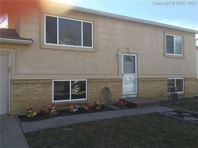 A rare walk-out updated Bi-level close to Fort Carson and I-25. The home was remodeled a few years ago! The home boasts a new roof, vinyl windows, and stucco exterior. The kitchen has upgraded stainless steal appliances and 42 inch custom cabinets. The home has a fully landscaped yard and huge shed in the back yard! If you have been looking for a move in ready home under 200k than look no further. The furnace and hot water heater are new as well. Located on a quiet street and close to new development and shopping!