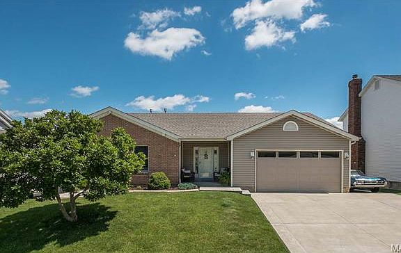 WOW!!! Beautiful brick front ranch in a great location, situated between Highways 70, 94, and 364! Location aside, this home speaks for itself! Custom carpentry work from head to toe, inside and out! The Kitchen features granite countertops & backsplash, center island, 2 panel oak cabinetry, SS appliances, porcelain/ceramic flooring, built in pantry w/ washer/dryer hookups, and 9' ceilings! Great room features vaulted ceilings, hardwood floors, gas fireplace, and atrium solid oak stairs. Master includes vaulted ceilings, onyx double bowl sinks in real hickory wood vanity, onyx shower w/ 3/8' glass doors, 6' marble whirlpool tub, hansgrohe faucets, and heated travertine floors! Finished lower level includes large rec room, wet bar, workout room, add. laundry room, and storage. Other upgrades include roof (2014), Andersen Windows, solid wood floors (and trim), fenced yard, elevated deck w/ SPIRAL Staircase, and inground fiberglass POOL!!! This home won't last long!!!