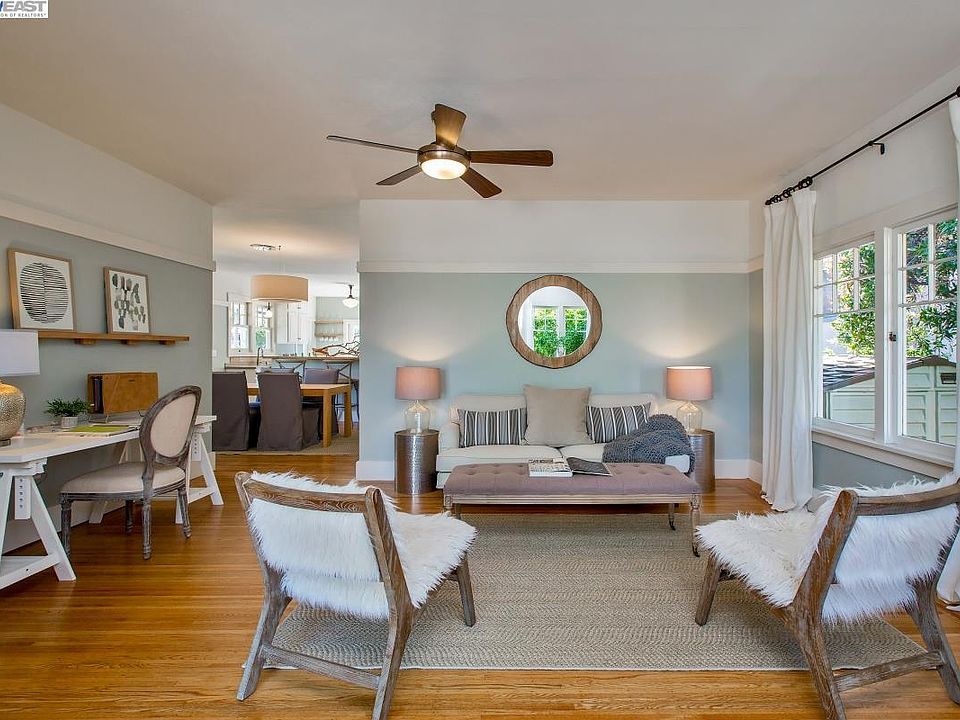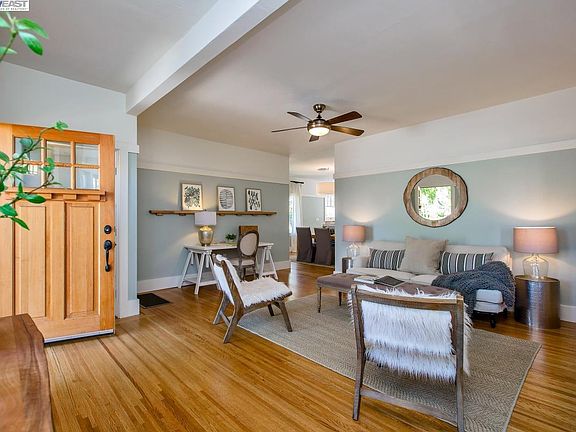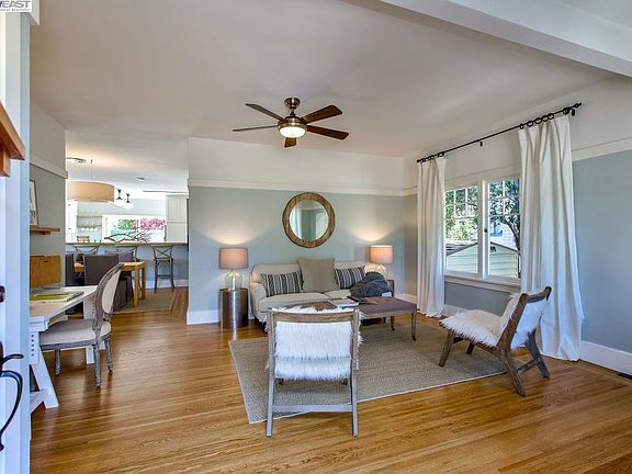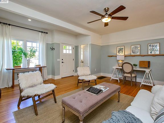 Single level East End Craftsman w/sunlit, open floor plan featuring a living room/dining room/kitchen great room, 3 BR, 2 BA & a detached 2-car garage. The living room includes original picture rails, wide baseboards, & gracious matchstick oak floors that continue throughout most of the home. The open kitchen has been thoughtfully designed to maximize space, & includes a checkered Marmoleum floor, a spacious breakfast bar, & freshly painted cabinets w/clever built-ins. A sliding door opens to the backyard, giving easy access from the kitchen to the yard & detached garage. The 2nd bath was a recent addition & features carrara hex-tile flooring, a white vanity topped w/quartz, & a large, walk in shower w/carrara subway tile surround. Premium location only minutes from Lincoln Park, top schools, tech shuttle access & downtown Park Street. Additional commuter options include BART, I-880, SF Ferry, AC Transit & Casual Carpool. A rare opportunity in a sought after neighborhood!