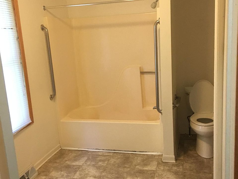 Large 2 bed with 1 large bathroom. Has 1st floor laundry, and sits on a 1 acre yard. Has large deck and side entry. Comes with refrigerator and stove. Renter responsible for utilities.