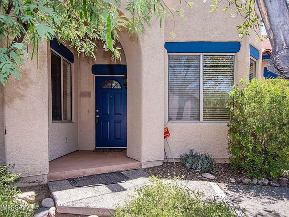 This one has it all! Cool concrete floors, low maintenance yards and mountain views, no neighbor directly behind. Great East facing covered patio for afternoon shade. Newer appliances, washer and dryer stay. HVAC replaced in 2018. This is a move in ready home in a quiet and desirable community with one way in and out. Community handles front yard landscaping and roads, community pool is close walking distance. Great restaurants and shopping nearby, straight shot to the UA.