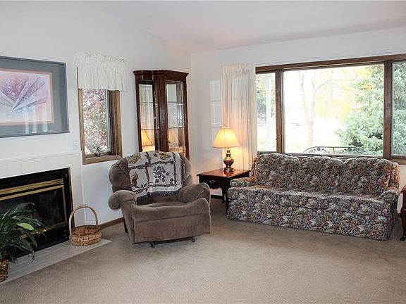 One level living in this immaculate ranch style home clean. Fireplace in living room, large dining room, double ovens in kitchen and plenty of windows for natural and bright light throughout. No steps in front or out to patio and 36" doors. Master bedroom has a walk in closet and private master bath with double sinks. Corner lot with well for watering and 2 car attached heated garage with hot /cold water, shelving, workbench and enterance into garage is from quiet side street. Roof was replaced in 2016.